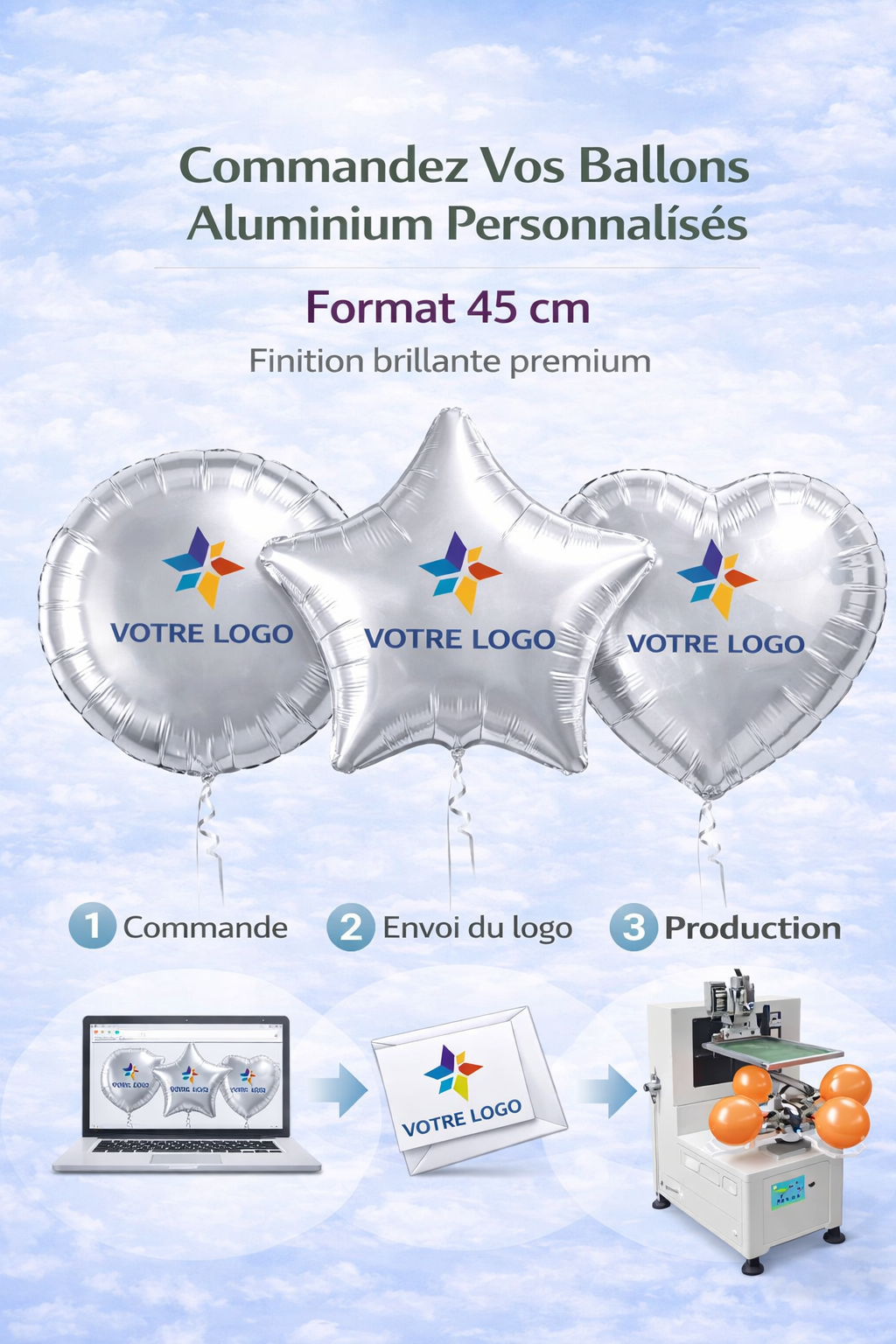 Mettez en avant votre entreprise avec nos ballons personnalisés aluminium de 30 cm, idéals pour les événements professionnels, salons, inaugurations ou opérations promotionnelles.