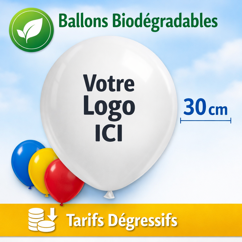 Mettez en avant votre entreprise avec nos ballons personnalisés en latex de 30 cm, idéals pour les événements professionnels, salons, inaugurations ou opérations promotionnelles.