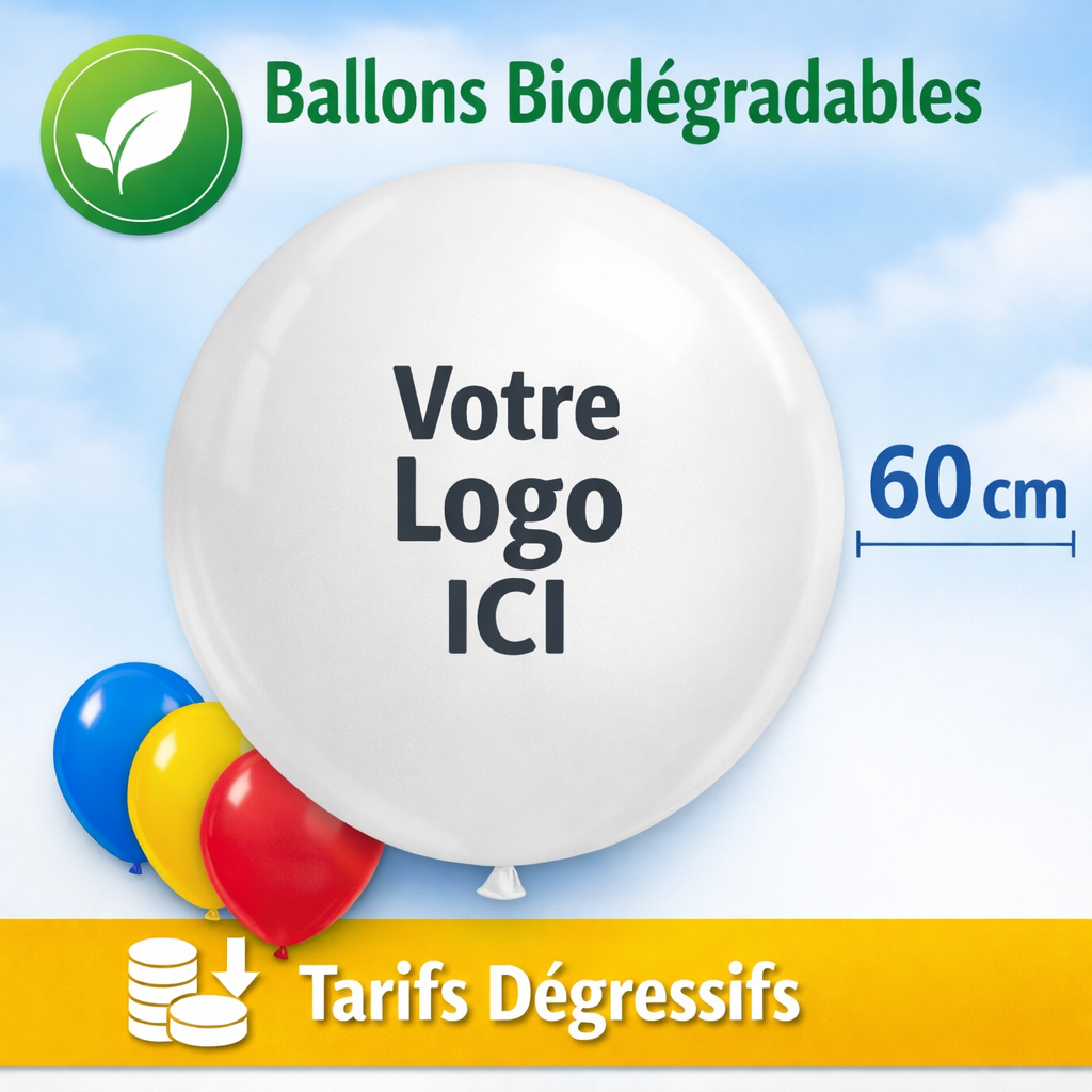 Mettez en avant votre entreprise avec nos ballons personnalisés en latex de 60 cm, idéals pour les événements professionnels, salons, inaugurations ou opérations promotionnelles.