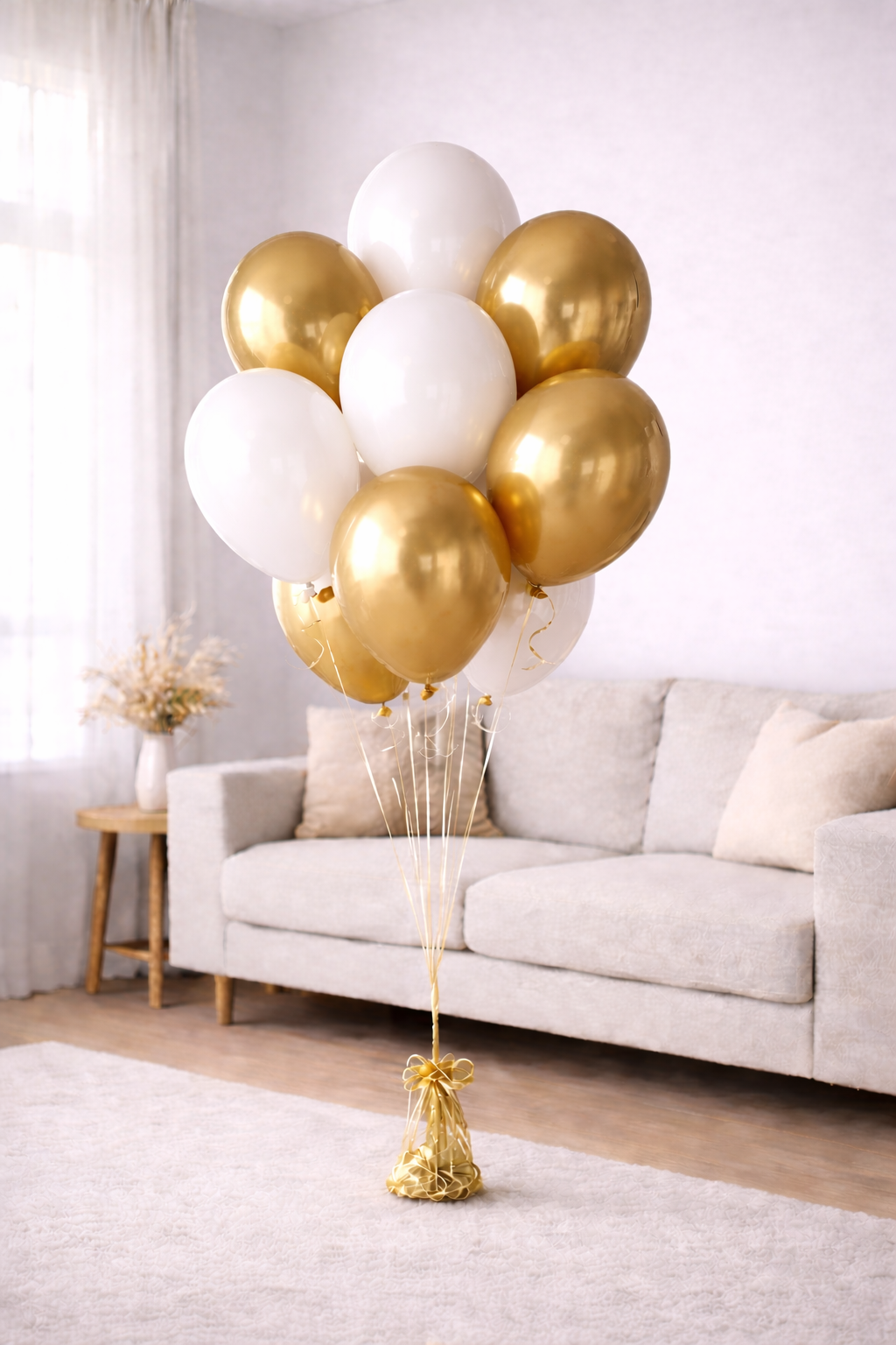 Kit Ballons Hélium – Chic – Doré chromé & Blanc